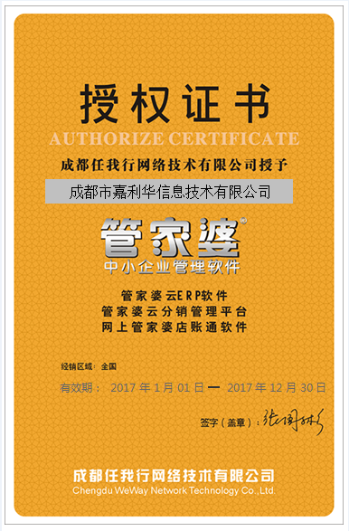 好消息:嘉利華簽約《網(wǎng)上管家婆云ERP產(chǎn)品線》全國經(jīng)銷商