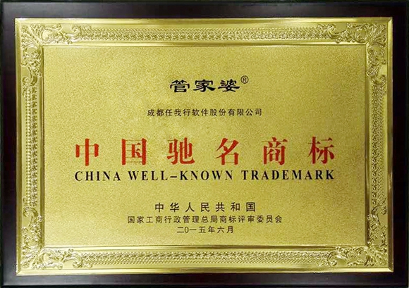 2016年4月21日,四川省工商局召開(kāi)2015年度馳名商標(biāo)、著名商標(biāo)授牌大會(huì),成都任我行軟件股份有限公司旗下的“管家婆”與“迪康制藥”、“蒲江雀舌”、“通江銀耳”等39家川企的高知名度商標(biāo)取得國(guó)家工商總局的馳名商標(biāo)認(rèn)定。